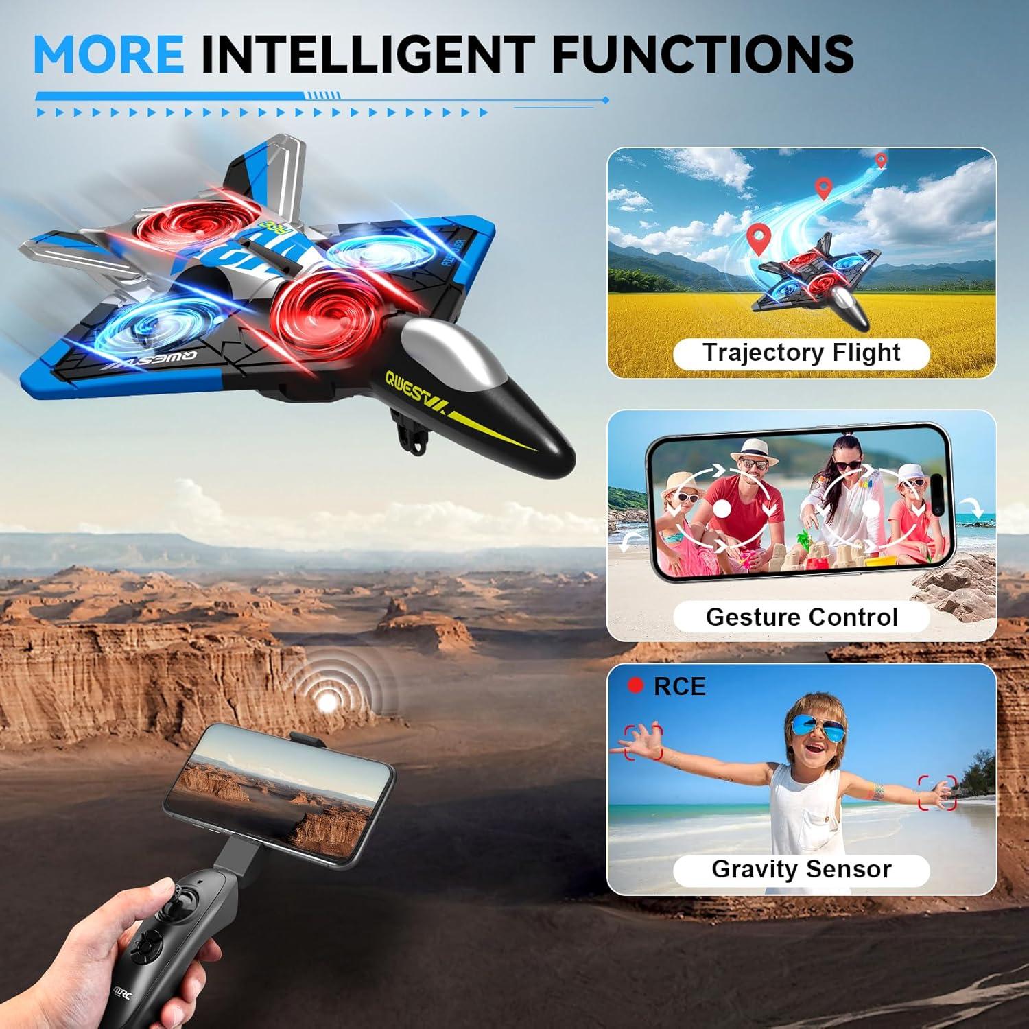 4DRC V31 Foam RC Planes Remote Control Airplanes for Kids Adults 4-7 8-16, Remote Control Planes Fighter Jet with Light, 360° Flip Fighter Jet Toy, Gravity Sensing, Stunt Roll, Gifts for Kids Boys(V313-WIFI)