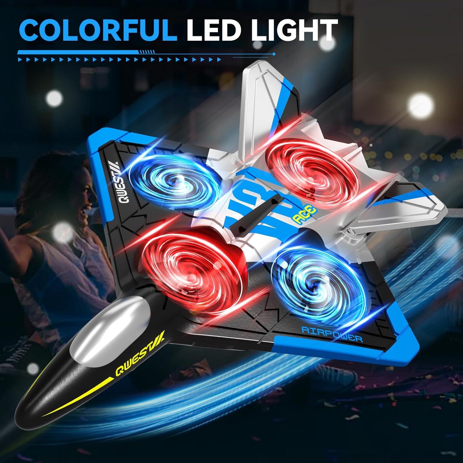 Colour LED Light: Equipped with bright LED lights, the rc airplane stands out vividly against the night sky. As the sun sets, the rc airplane transforms into a glowing spectacle, leaving a trail of light in the sky as it performs its aerial maneuvers. During a family camping trip, the illuminated airplane can be the highlight of the evening, creating magical memories for everyone. It’s not just a great way to extend playtime into the evening but also adds a touch of magic to every flight, making it stand out in any setting, from a quiet suburban backyard to a bustling community event.
