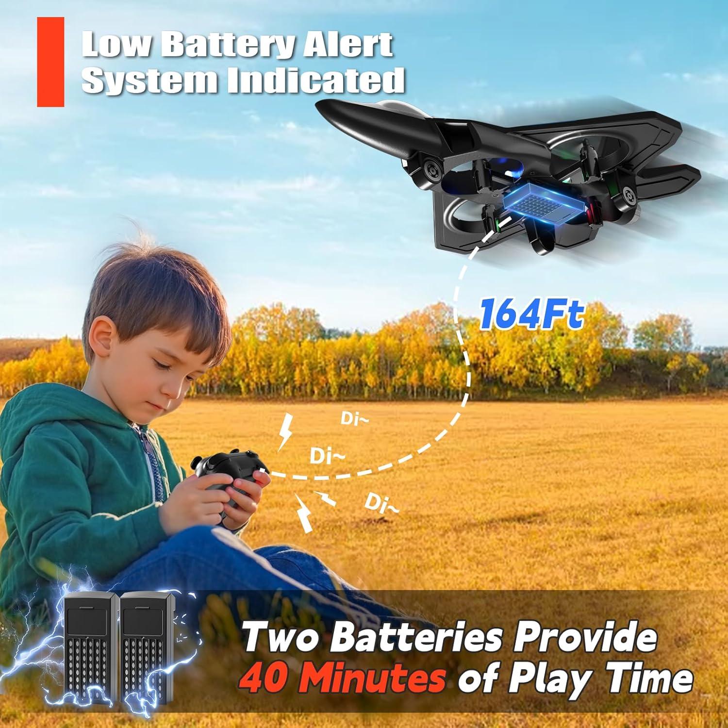 360° Flip & Aerial Stunts: Packed with exciting features like aerobatic rolls, 360-degree circling, and fast take-offf, headless mode, one-key takeoff/landing, altitude hold, and three speed options, etc. From performing gravity-defying spins in the school gymnasium to graceful hovering over a sandy beach, every flight is a chance for your child to showcase their piloting skills and creativity.