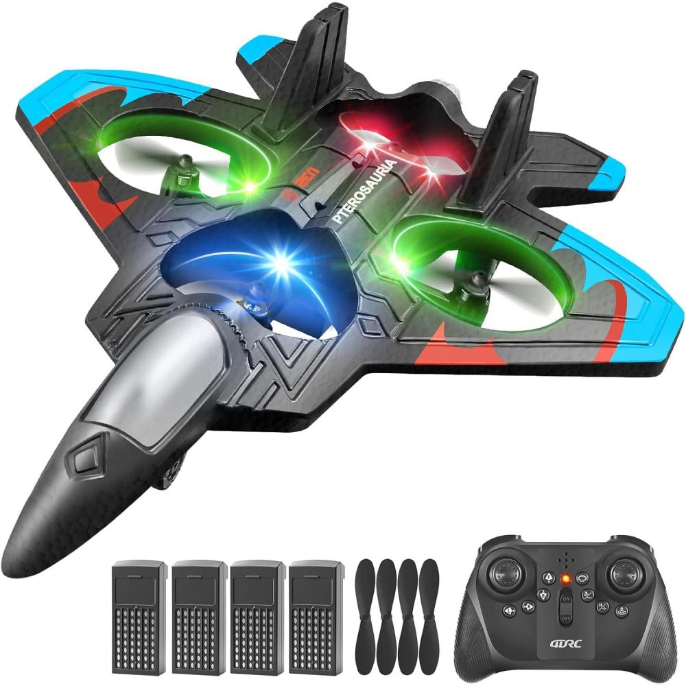 4DRC V32 Foam Remote Control Airplanes RC Planes for Kids Adults, RC Airplane Helicopter Drone Fighter Jet with Light, 360° Flip, Stunt Roll, Airplane Toy Gifts for Kids Boys Adults Beginners(V32-4batteries)