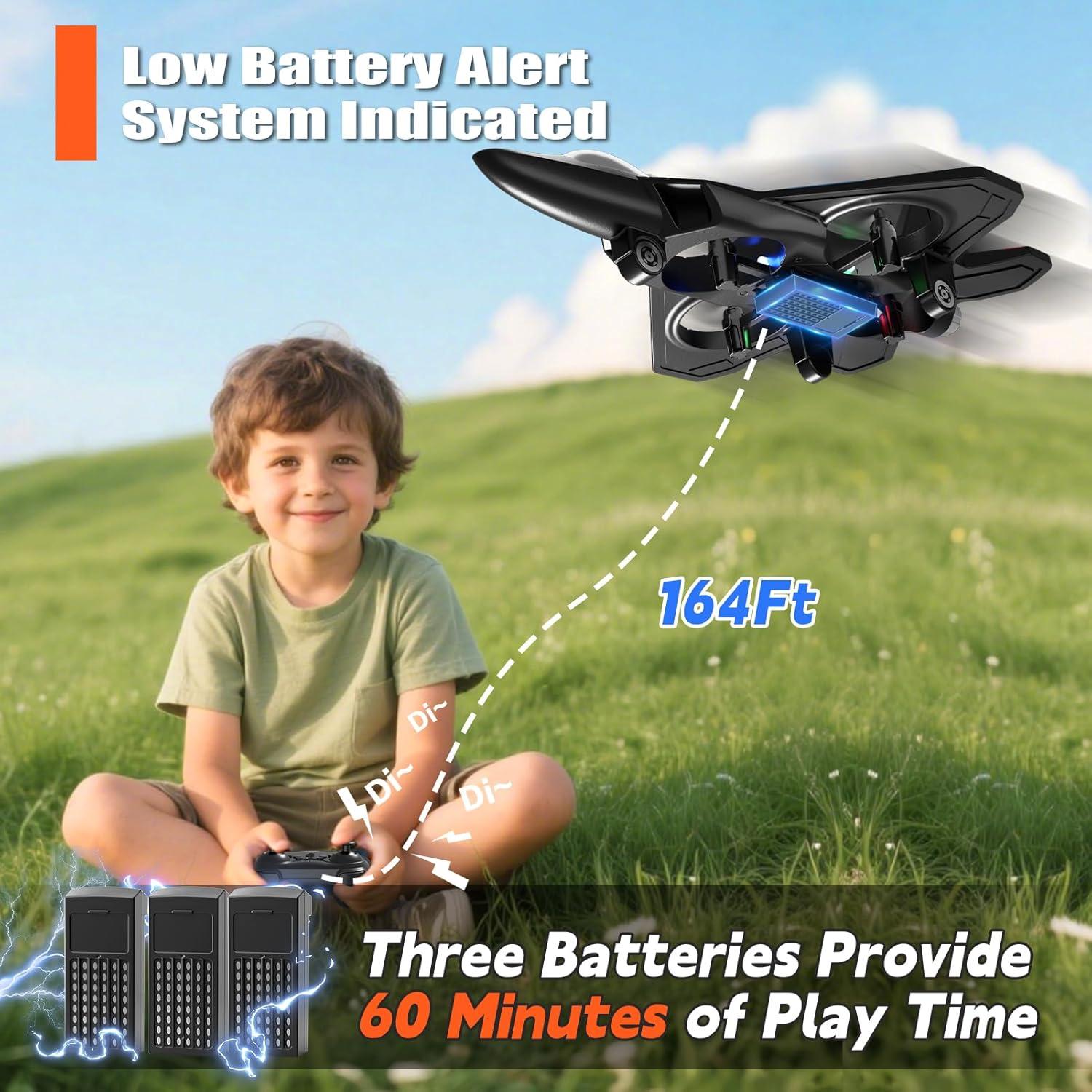 360° Flip & Aerial Stunts: Packed with exciting features like 360-degree circling, and fast take-offf, headless mode, one-key takeoff/landing, altitude hold, and three speed options, etc. From performing gravity-defying spins in the school gymnasium to graceful hovering over a sandy beach, every flight is a chance for your child to showcase their piloting skills and creativity.