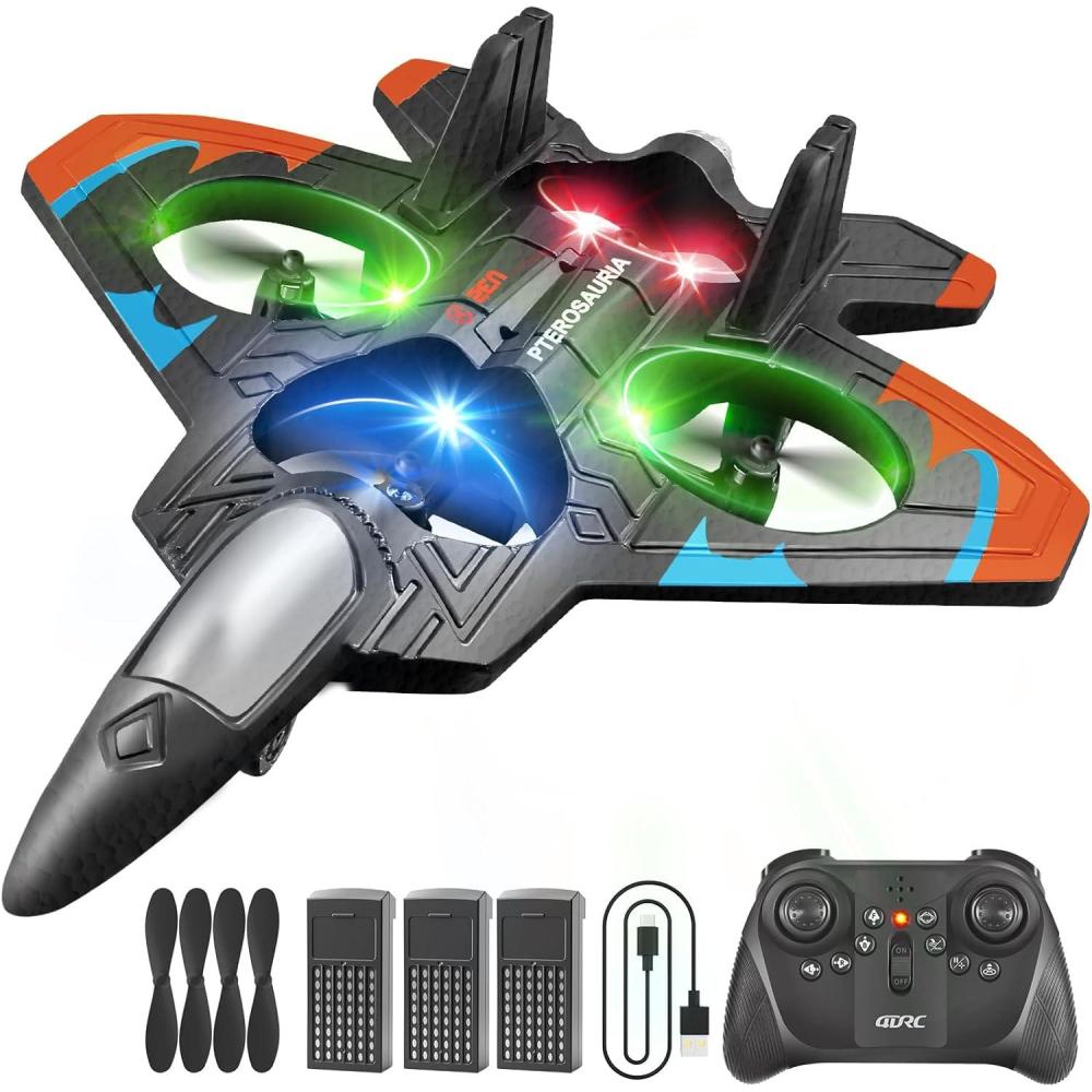 4DRC V32 Foam Remote Control Airplanes RC Planes for Kids Adults, RC Airplane Helicopter Drone Fighter Jet with Light, 360° Flip, Stunt Roll, Airplane Toy Gifts for Kids Boys Adults Beginners(V32-orange 3batteries)
