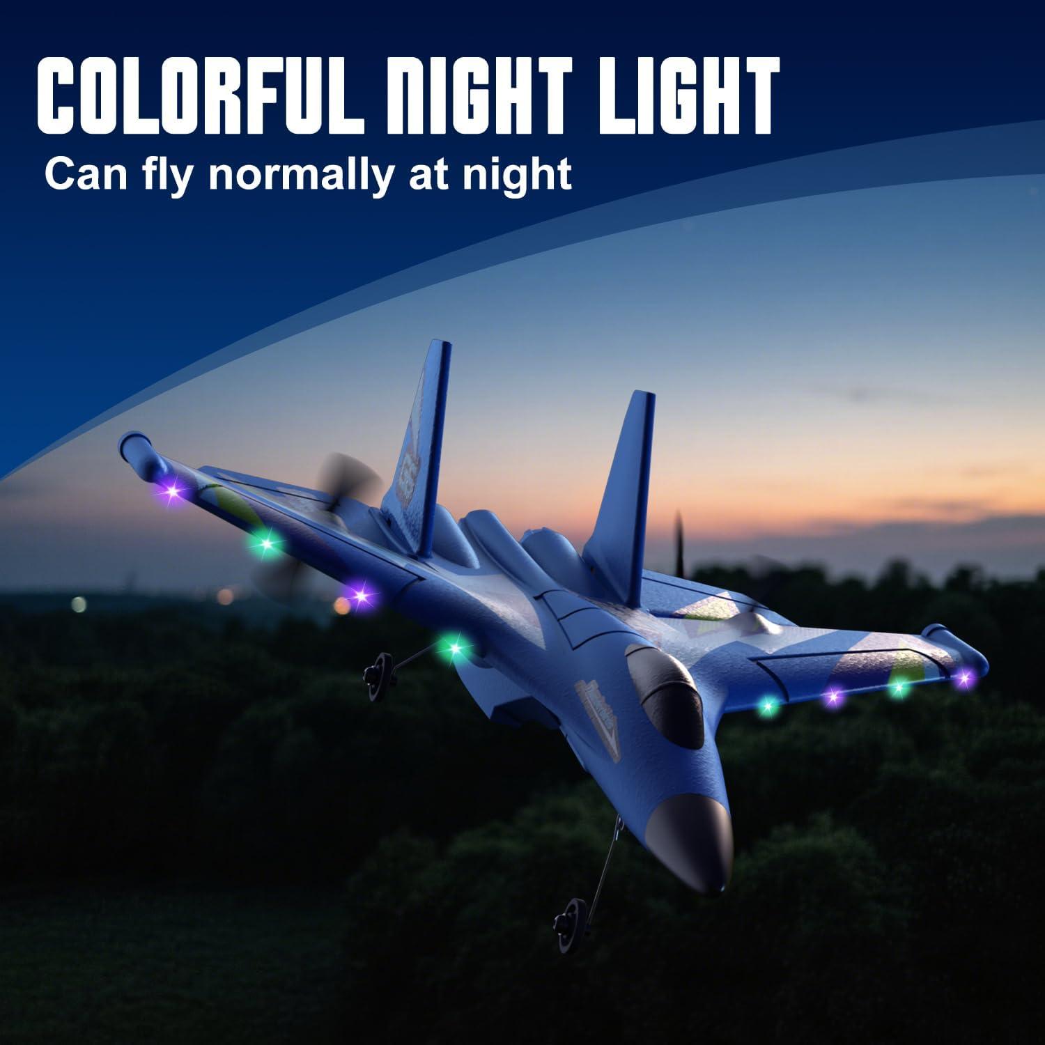 Colorful Night Lights: Let the fun last into the night! The rc plane features bright, colorful lights that make it visible and super cool when flying after sunset. Your kids or friends can put on a unique flying show in the evening sky, impressing friends and family.