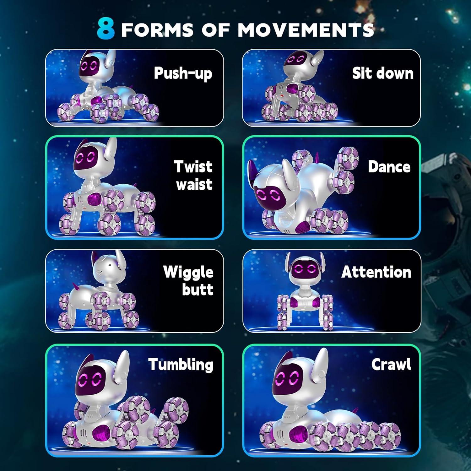 imageRobot Dog Toys for Kids Remote Control Robots Dog with AutoDemonstration RC Stunt Remote Control Smart Robot for Age 3 4 5 6 7 8 9 10 11 12 Year Old Boys Girls Birthday Gift PresentPurple