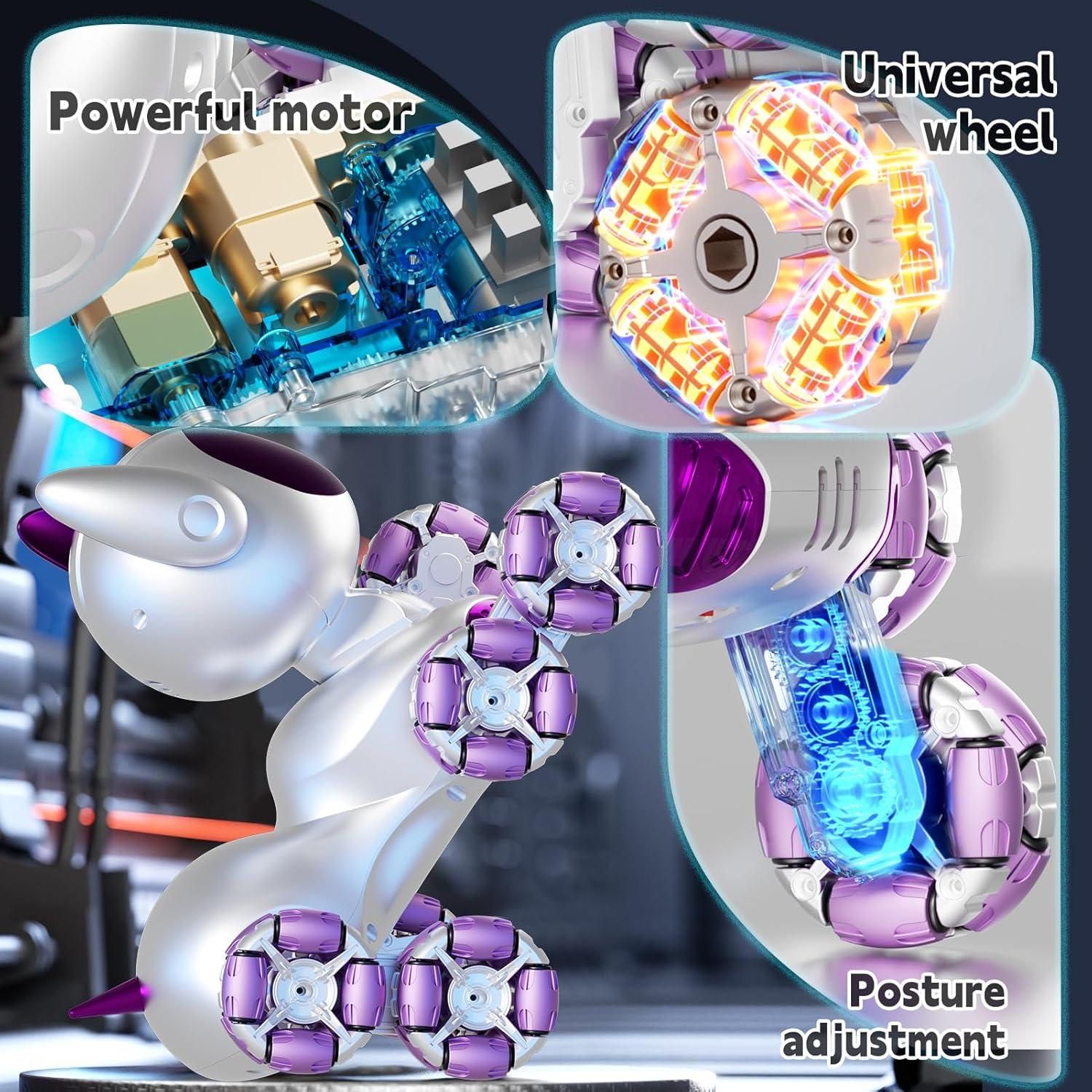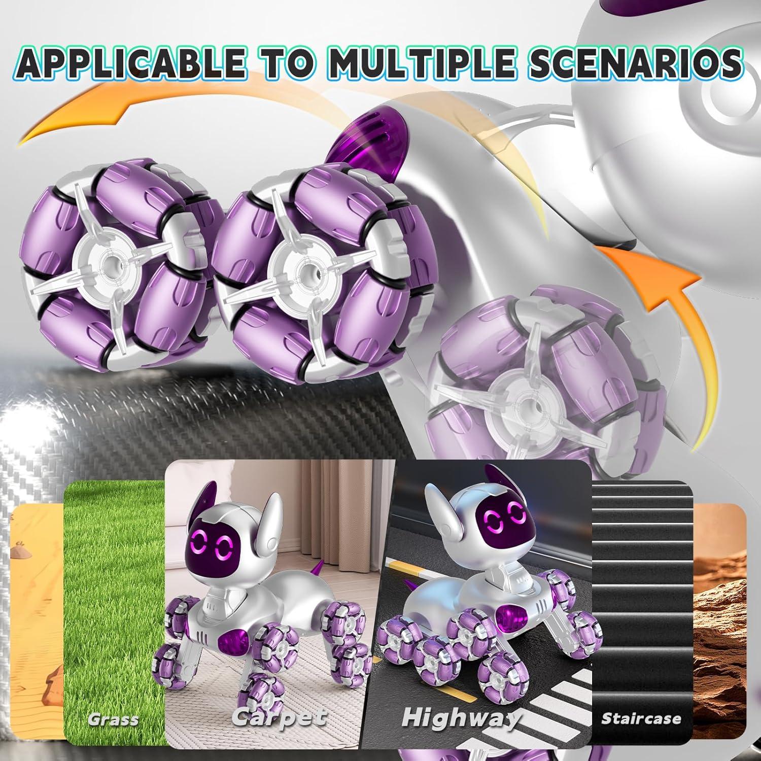 Robot Dog Toys for Kids, Remote Control Robots Dog with Auto-Demonstration, RC Stunt Remote Control Smart Robot for Age 3 4 5 6 7 8 9 10 11 12 Year Old Boys Girls Birthday Gift Present(Purple)
